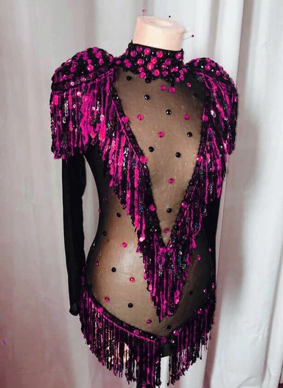 Body Résille Maille Fine Et Franges