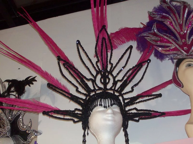 Casque Paillettes Noires Avec Plumes